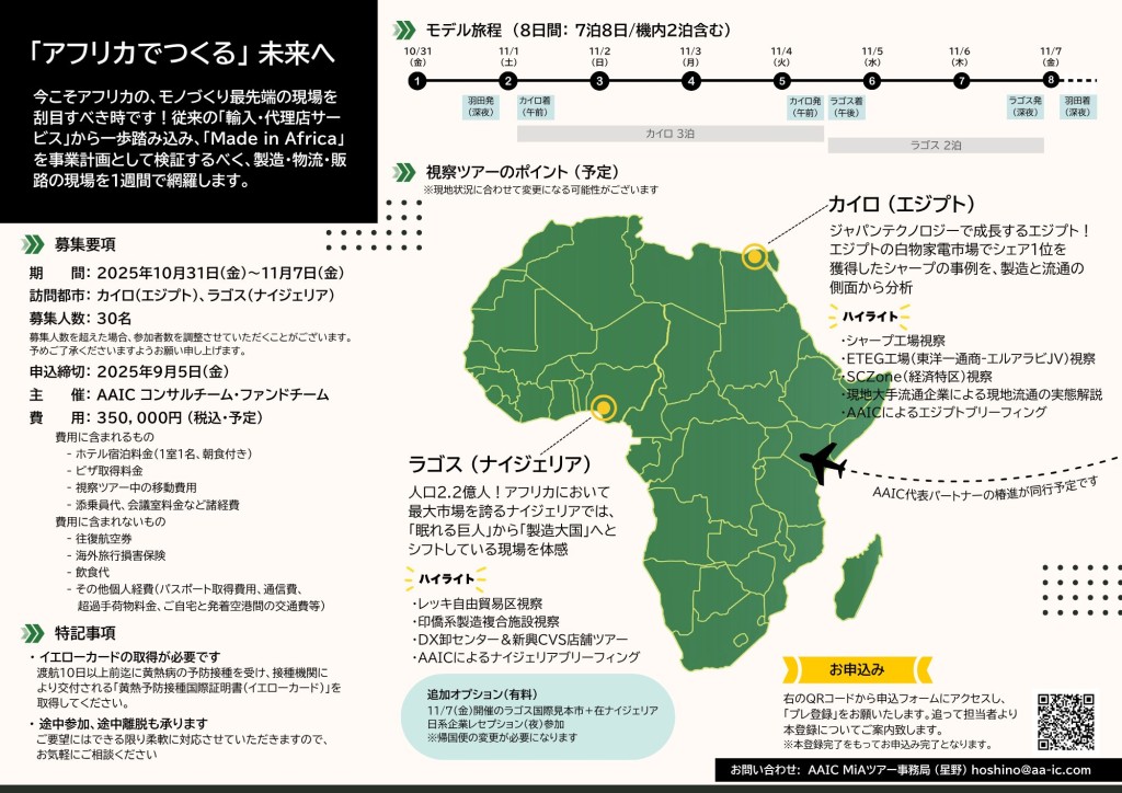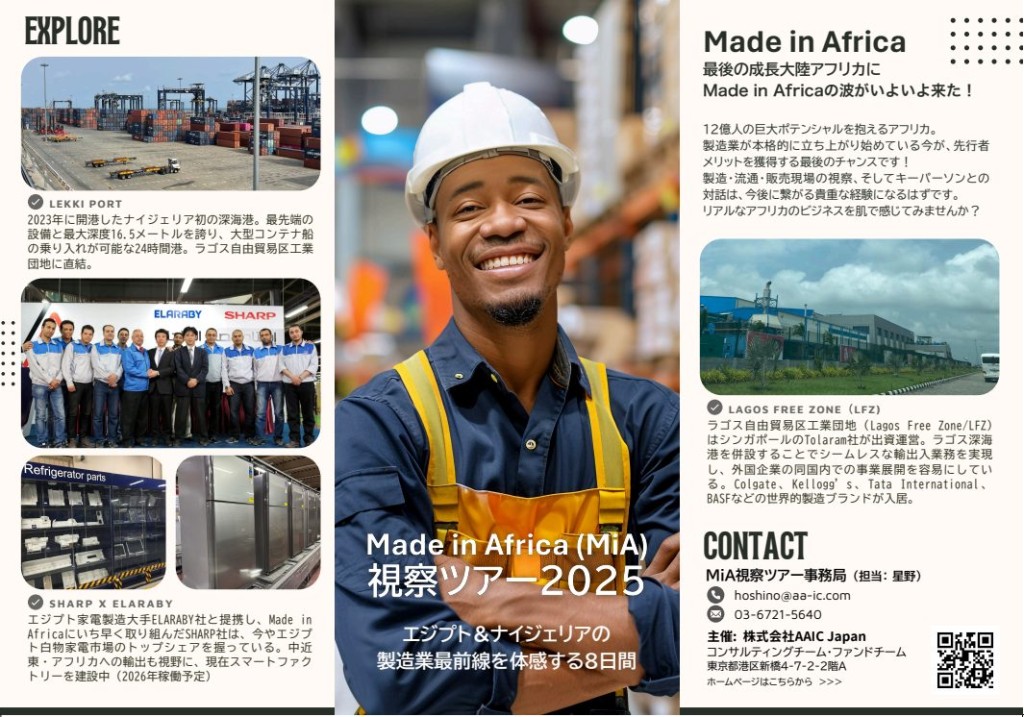 ●企画名:AAIC主催「Made in Africa(MiA)ツアー 2025 秋 〜エジプト&ナイジェリアの製造業最前線を体感する8日間〜」